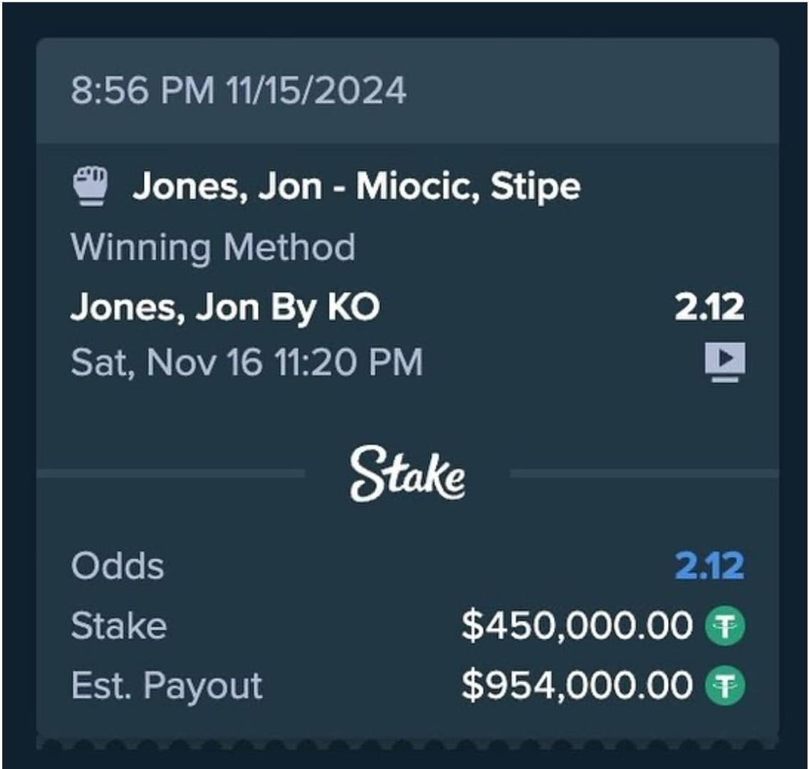 A najpoznatiji svjetski reper Drake uvjeren je u pobjedu Jona Jonesa, no nije se pokazao kao vrsni znalac kladionice. Prvo se kladio na Tysona protiv Paula i fulao, pa po tome mozda promaši i Jonesa. Drake je na slavlje uložio 450 tisuća dolara, a ukoliko Jones slavi, kladionica će mu isplatiti gotovo milijun dolara, što je i objavio na svom Instagramu.