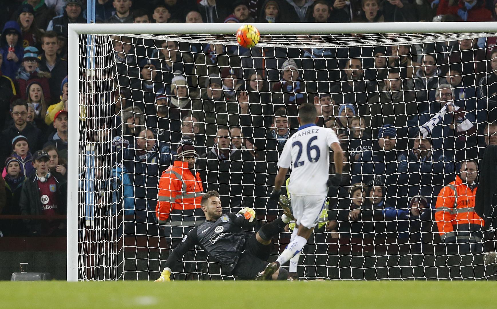 Gosti su poveli u 28. minuti, Vardy je fenomenalno lobom pokušao prevariti Bunna, ali vratar Aston Ville to je kranjim naporom obranio. Na njegovu žalost natrčao je Okazaki i zabio za 1:0. Doduše, uspio je i to obraniti Bunn, ali je loptu zaustavio iza gol-linije i sudac je opravdano pokazao na centar. Pet minuta kasnije Leicester je imao priliku povisiti vodstvo iz jedanaesterca, ali udarac Mahreza obranio je sjajni vratar domaće momčadi.