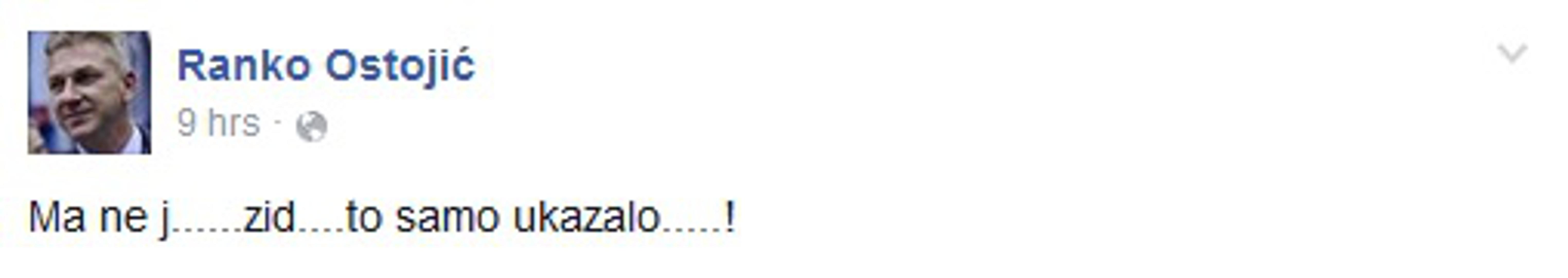 - Ma ne j......zid....to samo ukazalo..... - stoji u statusu posljednjeg ministra Ostojića u Vladi, a zatim niže u komentarima piše mišljenje o tome zašto se kukasti križ nije vidio prije početka utakmice s Talijanima: