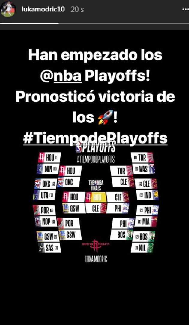 NBA ligi poÄ�elo je doigravanje, a okladu tko bi mogao do naslova nabacili su i hrvatski nogometni reprezentativci Luka Modrić i Mateo KovaÄ�ić. Modrić je uvjeren da će prvak biti Houston Rocketsi koji će u finalu dobiti Cleveland Cavalierse.Â