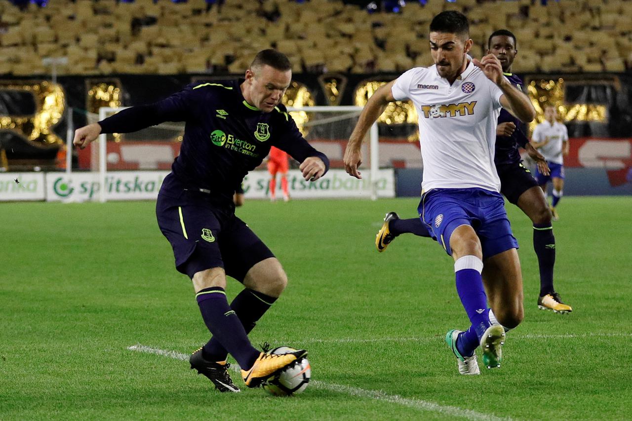 Lopta je imala čudnu, vijugavu putanju, i prevarila Jordana Pickforda za vodstvo bijelih. Kakva je to opet bila erupcija oduševljenja. Svi navijači završnicu prvog dijela dočekali su na nogama. Everton u prvom je u tim trenucima doslovce bio u konopcima. Klub iz Liverpoola koji je jučer slavio 125 rođendan nije uputio niti jedan udarac u okvir gola u prvom poluvremnu. Niti Wayne Rooney, koji je objavio da završava reprezentativnu karijeru, jedan od najvećih igrača koji su igrali u Splitu ništa nije pokazao u prvom poluvremenu.