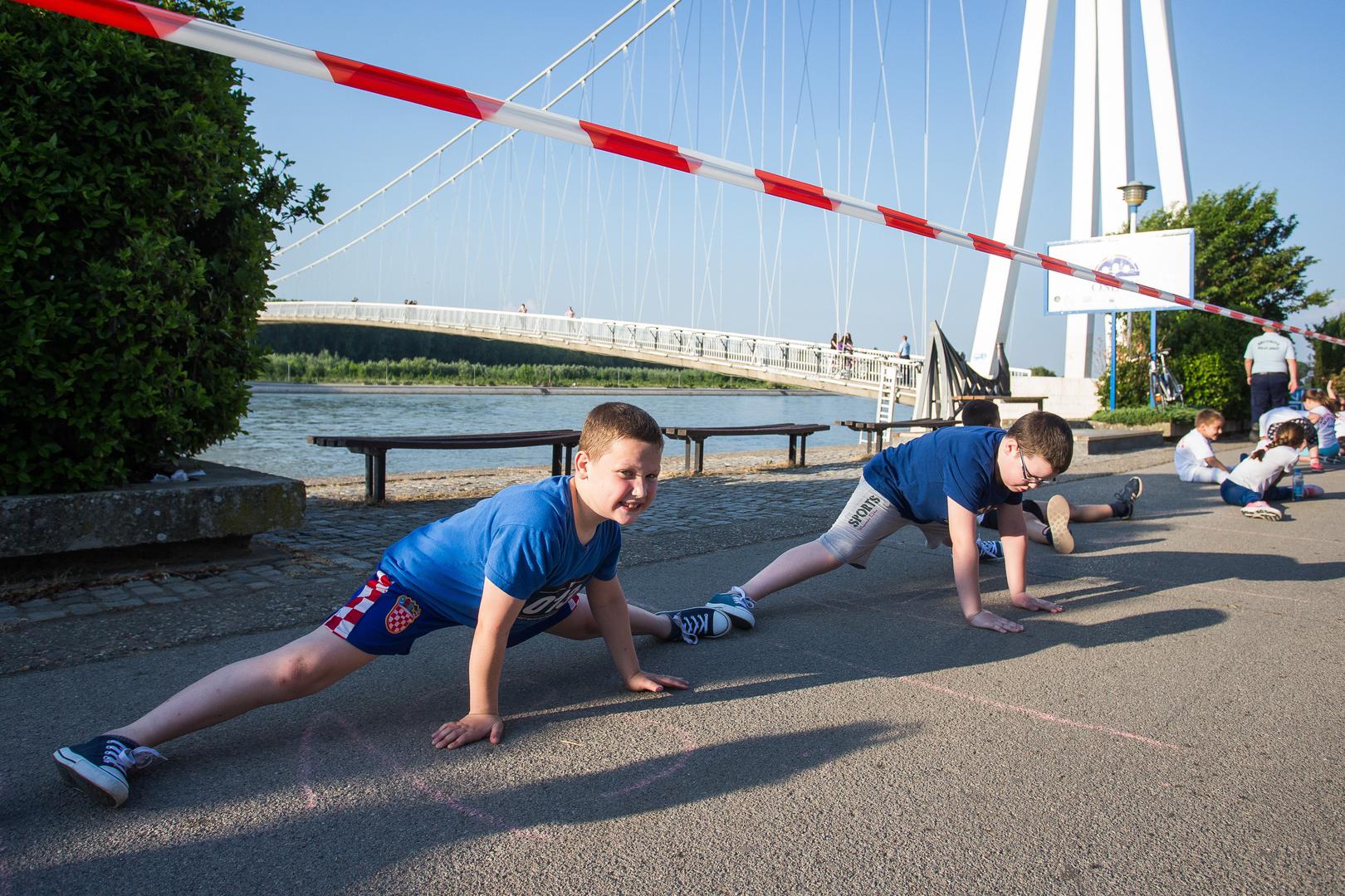 Najdužu špagu na svijetu, dugu gotovo 1000 metara, sastavljenu od 530 sudionika formirali su danas brojni sportski klubovi i građani na Promendi kod Pješačkog mosta u Osijeku.