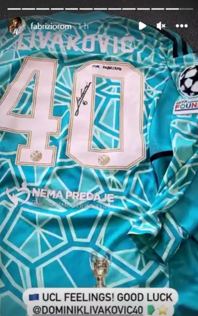 Livaković mu se potpisao na poleđinu dresa uz posvetu: 'Za Fabrizija'.