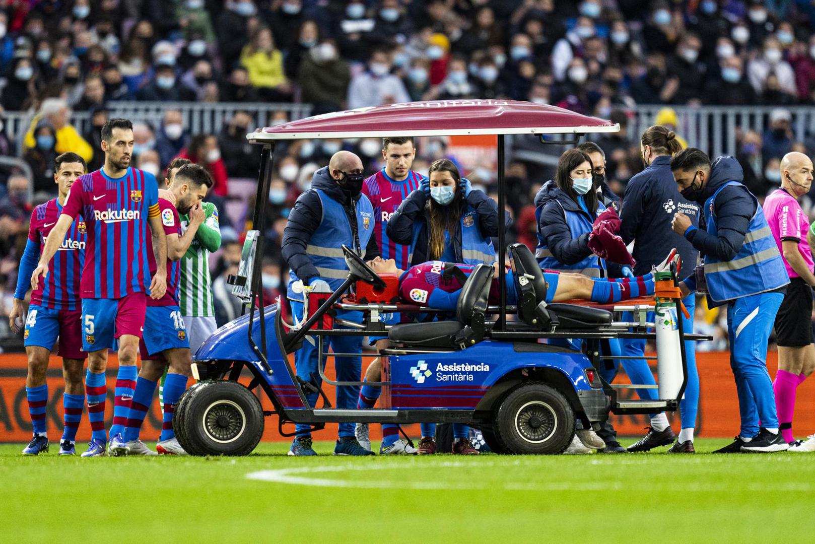 Gavi (FC Barcelona) leave the pitch after his injury, during La Liga football match between FC Barcelona and Real Betis, at Camp Nou Stadium in Barcelona, Spain, on December 4, 2021. Foto: Siu Wu.
