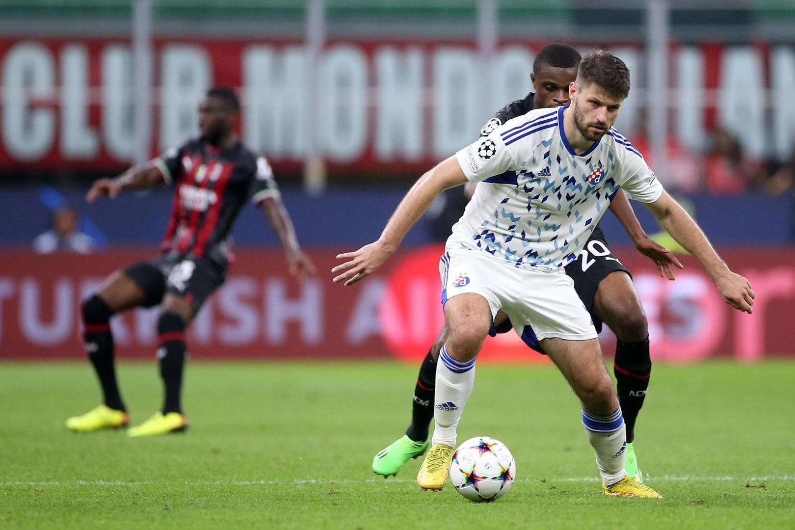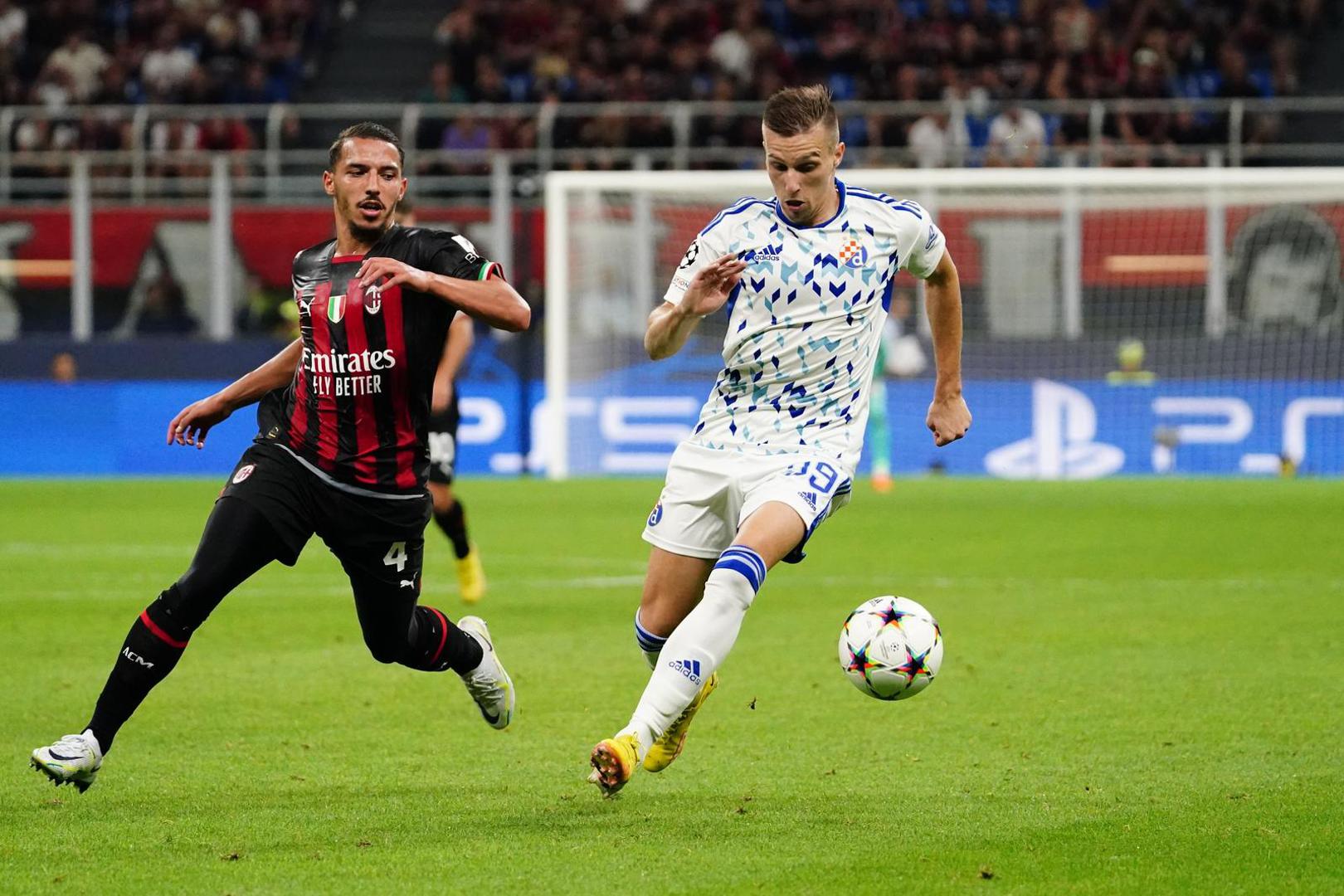 14.09.2022., stadion San Siro, Milano - UEFA Liga prvaka, 2. kolo, skupina E, AC Milan - GNK Dinamo. Josip Misic, Bruno Petkovic Photo: Marko Lukunic/PIXSELL