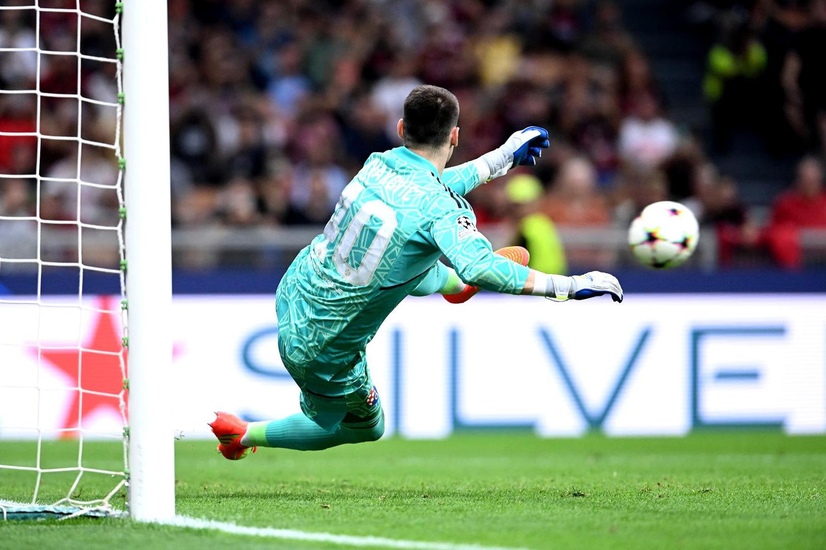 14.09.2022., stadion San Siro, Milano - UEFA Liga prvaka, 2. kolo, skupina E, AC Milan - GNK Dinamo. Dominik Livakovic, Danijel Zagorac. Photo: Marko Lukunic/PIXSELL