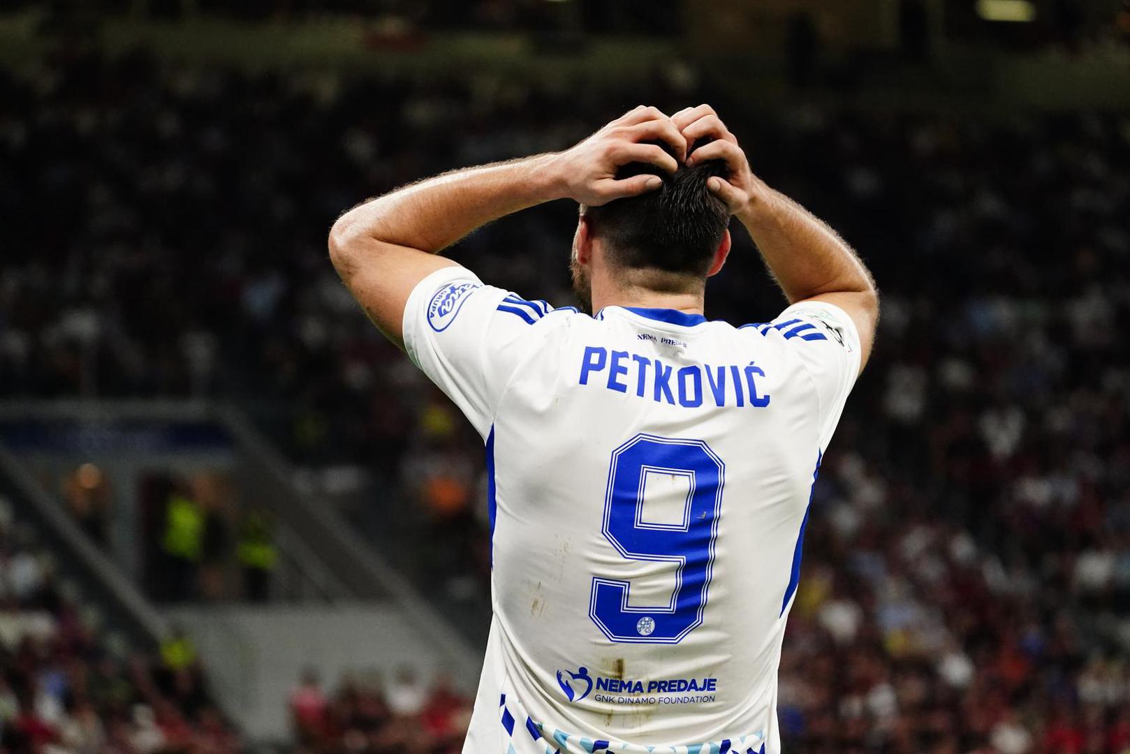 14.09.2022., stadion San Siro, Milano - UEFA Liga prvaka, 2. kolo, skupina E, AC Milan - GNK Dinamo. Bruno Petkovic, Stefan Ristovski Photo: Marko Lukunic/PIXSELL