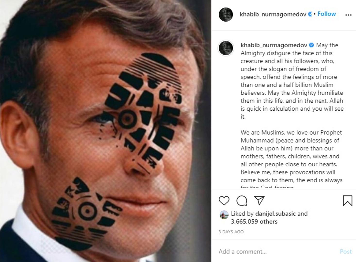 Sjajni ruski borac Habib Nurmagomedov ovih je dana poslao je žestoku poruku francuskom predsjedniku Emmanuelu Macronu zbog izjava nakon terorističkih napada.