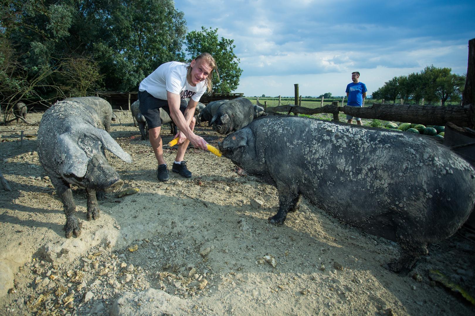 Na jednom obiteljskom gospodarstvu hranio je svinje koje nisu odoljele da ne uzmu slasni klip kukuruza iz ruke srebrnog vatrenog!