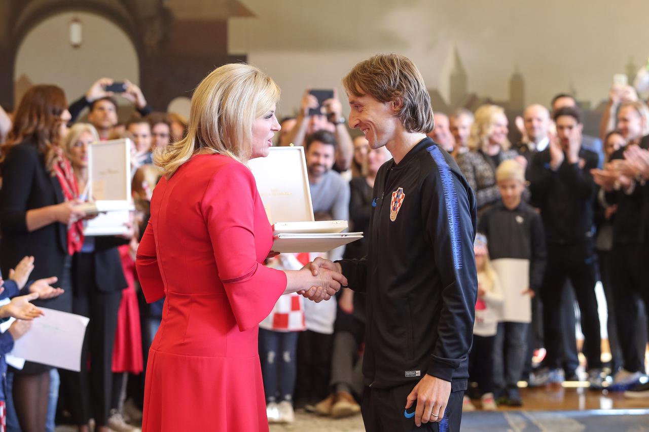 Naime, predsjednica Republike Hrvatske Kolinda Grabar-Kitarović na Pantovčaku primila je brojnu delegaciju Hrvatskoga nogometnog saveza i uručila odlikovanja zaslužnima za najveći uspjeh našeg nogometa, po mišljenju mnogih i našeg sporta uopće.