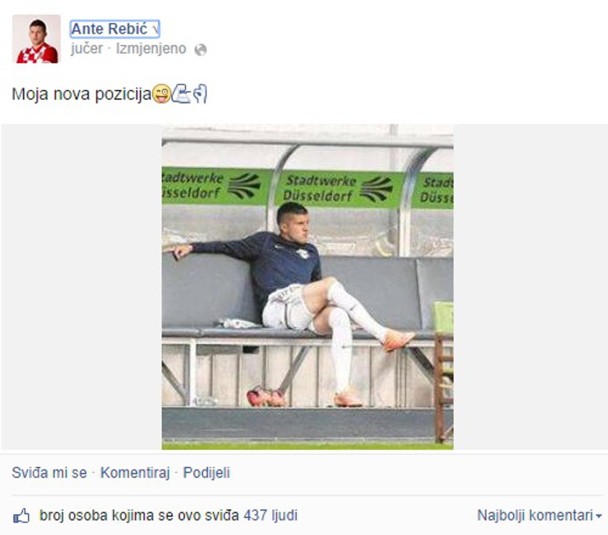 Na Facebook profil stavio je fotografiju na kojoj se vidi kako sjedi na klupi za rezerve pa je dodao i svoj komentar:
