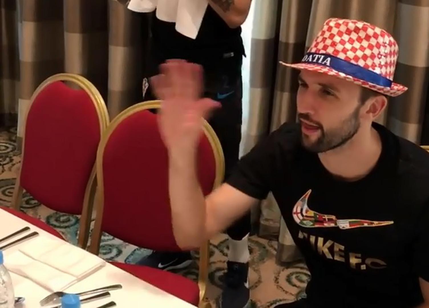 Badelju su se u pjesmi pridružili Šime Vrsaljko i Mateo Kovačić koji je na sebe stavio bijele ubruse