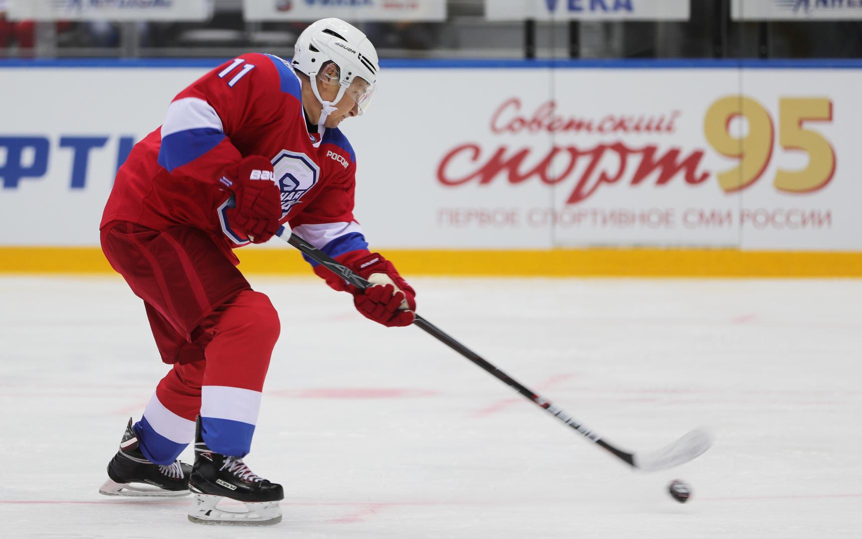 Putin je igrao u napadu svoje momčadi zajedno s ministrom obrane Sergejem Šojguom i s legendarnim ruskim hokejašima Pavelom Bureom i Igorom  Larionovim.
