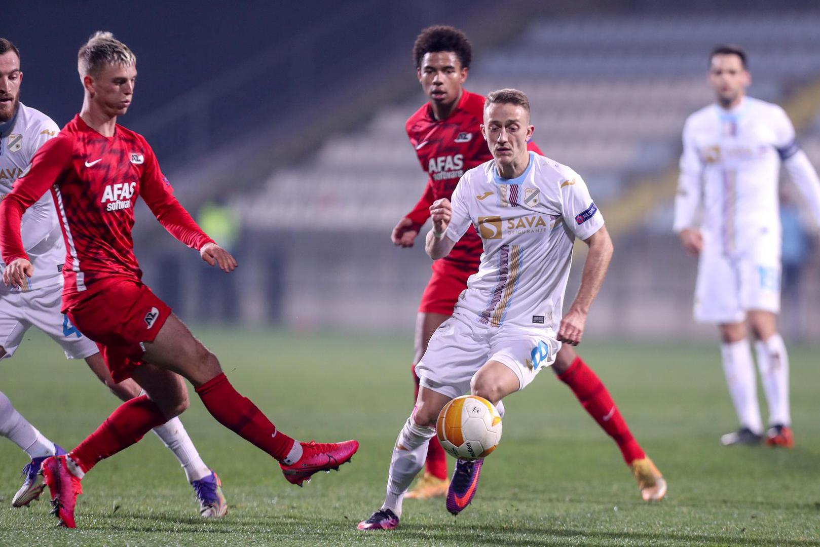 10.12.2020., Rijeka - Utakmica 6. kola skupine F UEFA Europa lige HNK Rijeka - AZ Alkmaar. Albert Gudmundsson, Tibor Halilovic.rPhoto: Luka Stanzl/PIXSELL