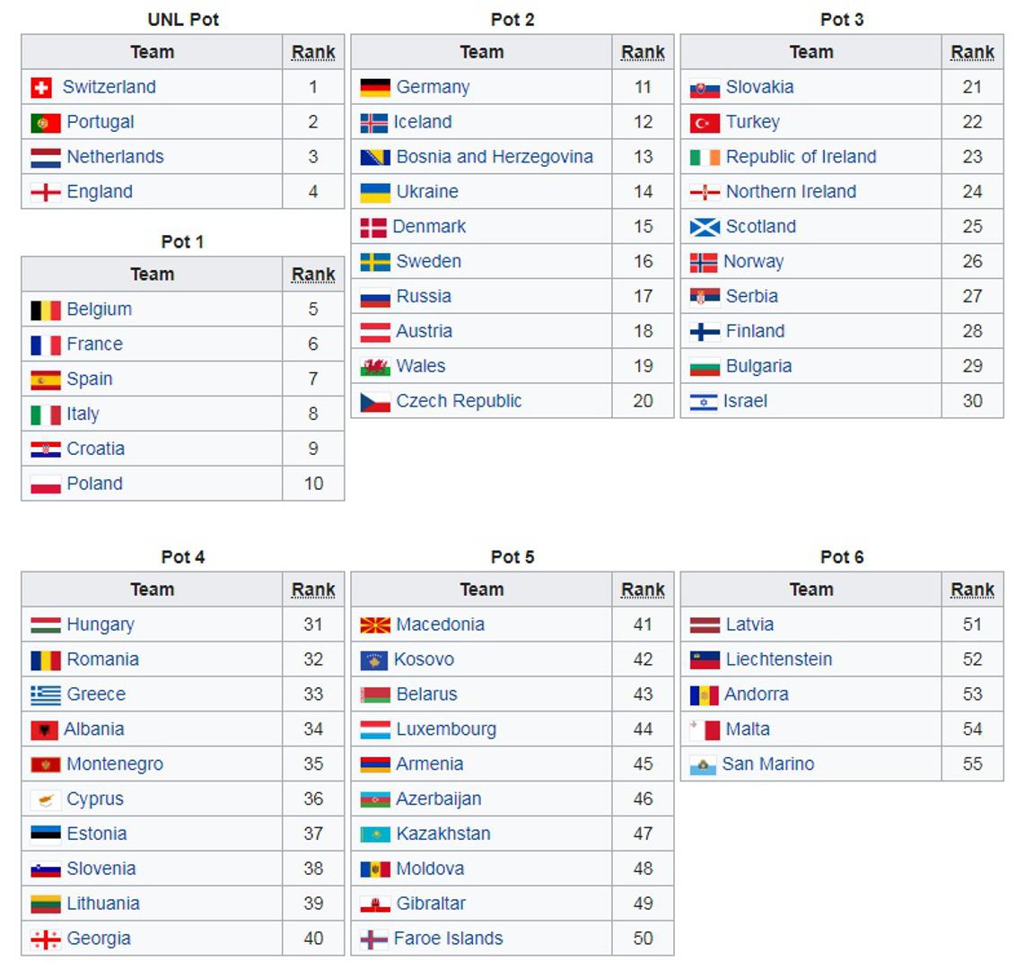 Zbog složenih političkih odnosa u kvalifikacijama međusobno neće moći igrati Armenija – Azerbejdžan, Gibraltar – Španjolska, Ukrajina – Rusija, Kosovo – Srbija, ali i Bosna i Hercegovina i Kosovo.