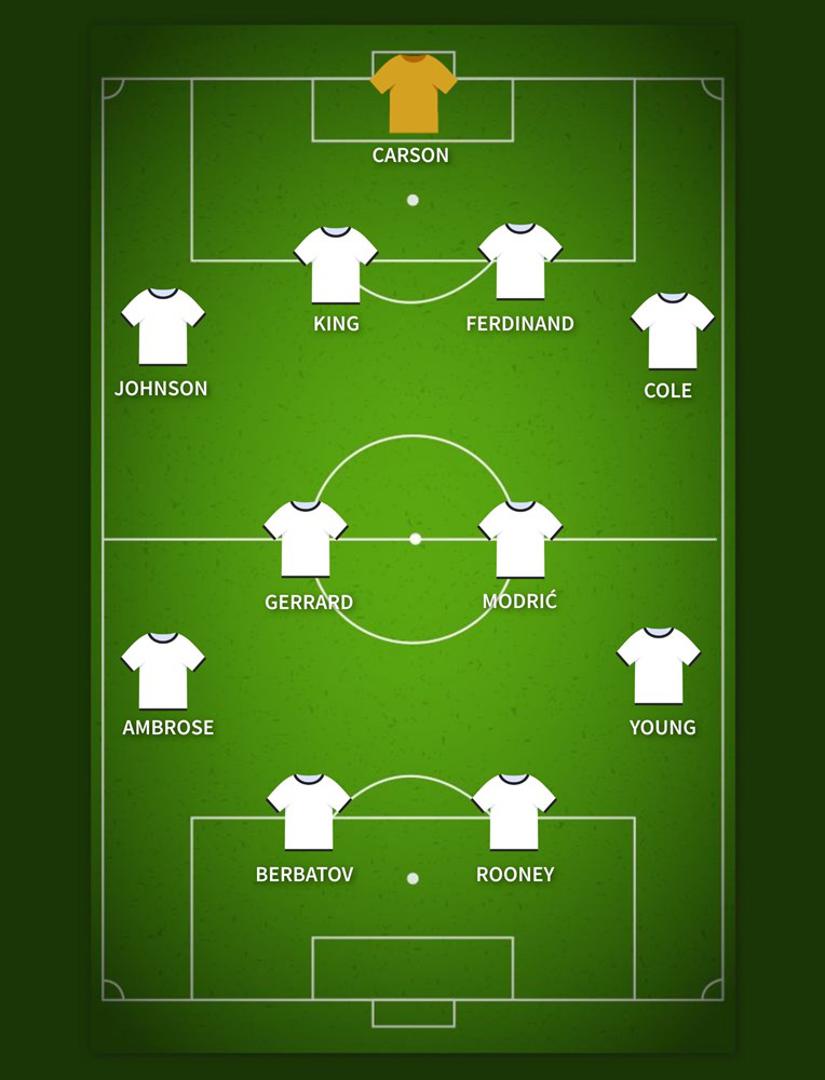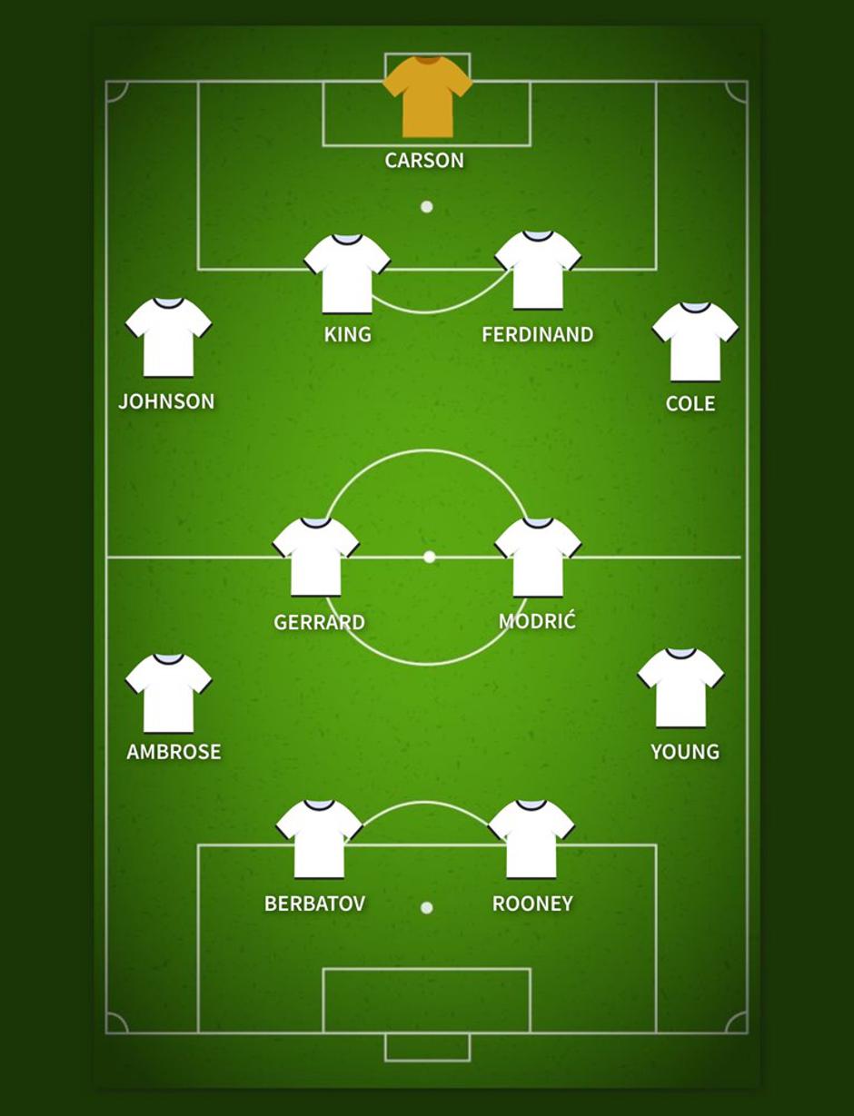 Takvi hvalospjevi Modriću uopće ne čude, slično će reći svi koji su s njima imali prilike igrati. A osim Gerrarda, u idealnih 11 Darrena Benta, društvo bi mu radili još Scott Carson, Ledley King, Rio Ferdinand, Ashley Cole, Glenn Johnson, Ashley Young, Darren Ambrose, Dimitar Berbatov i Wayne Rooney.