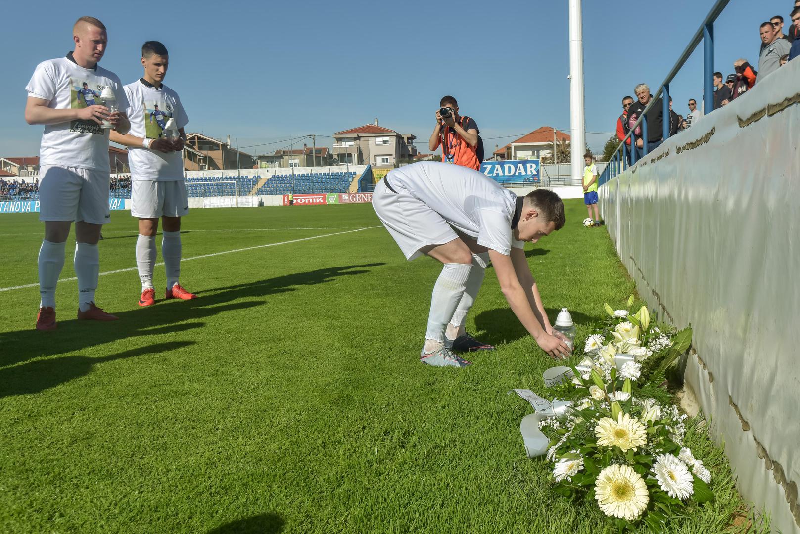 07.04.2018., Zadar - Igraci NK Zadar prije pocetka utakmice s Neretvancem odali su pocast Hrvoju Custicu, igracu NK Zadra koji je prije 10 godina podlegao ozljedama koje je zadobio na utakmici. "nPhoto: Dino Stanin/PIXSELL