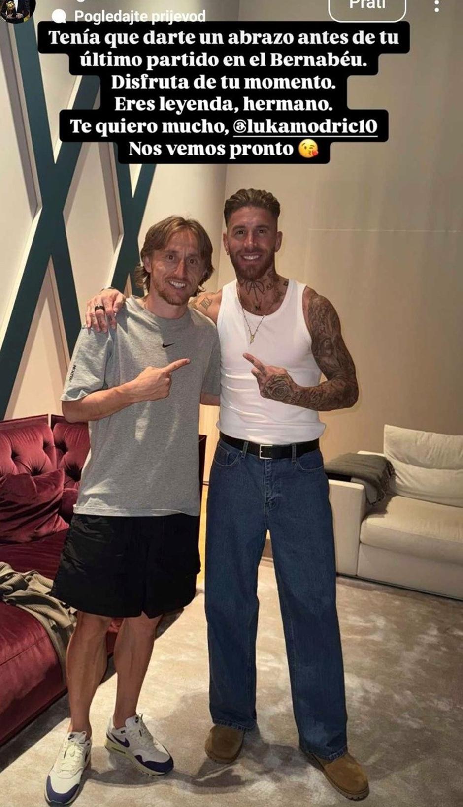 "Morao sam te zagrliti prije zadnje utakmice na Bernabeuu. Uživaj u trenutku. Ti si legenda, brate. Volim te jako. Vidimo se uskoro", poručio je Ramos Modriću uoči utakmice. Modrić i Ramos zajedno su branili boje Reala od 2012. do 2021. godine i tijekom gotovo desetljeća zajedničke karijere bili ključni stupovi jedne od najuspješnijih generacija u povijesti kluba.