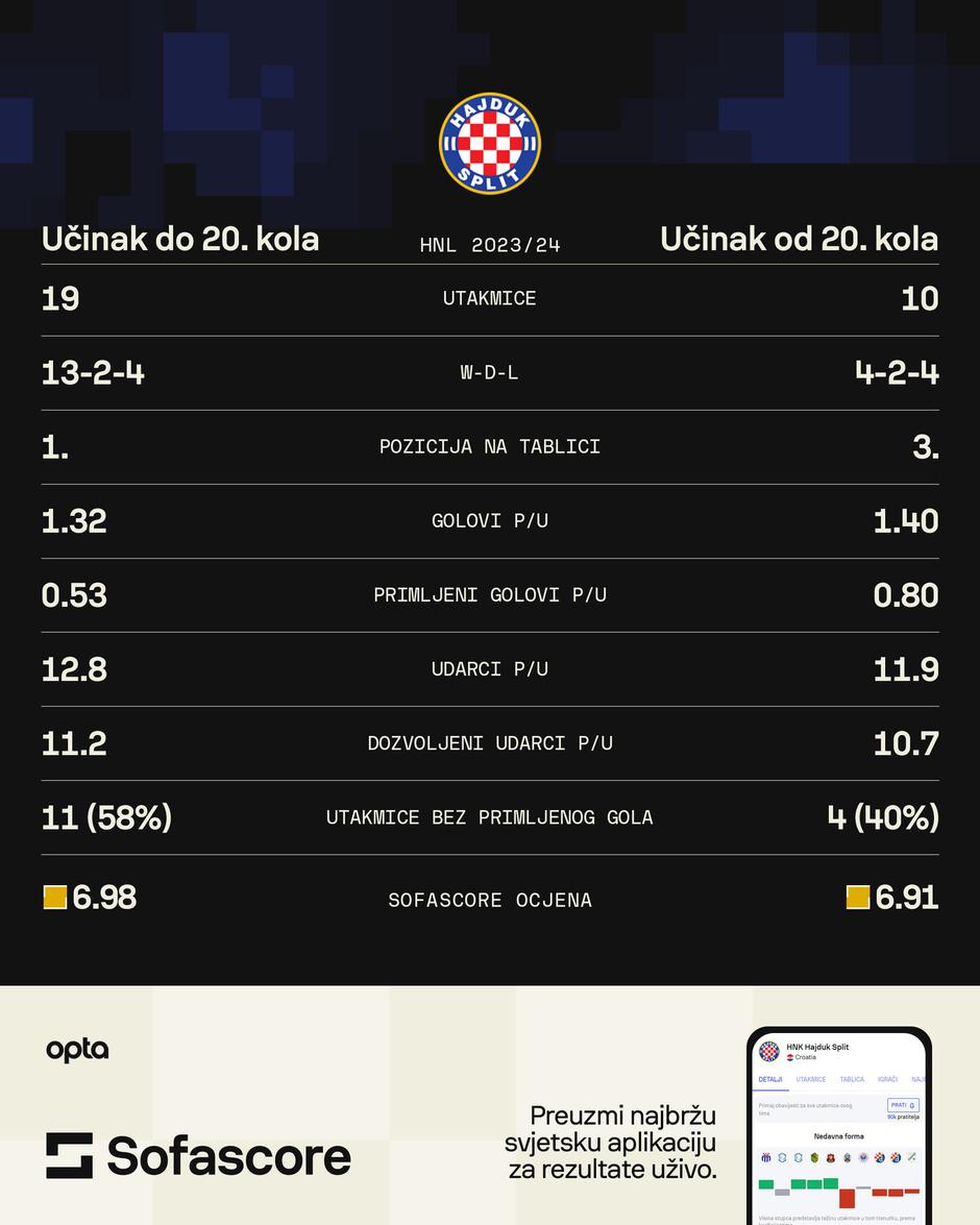 Pravi debakl počeo je porazom protiv Lokomotive na Poljudu. Ona dva gola Roberta Mudražije načela su rane, a redanje poraza nije stalo do danas. Dvaput Dinamo, u prvenstvu i u Kupu, a onda i Rijeka za kraj trotjednog pakla na Poljudu. Hajdukov pad na minus deset na prvenstvenoj ljestvici, ispadanje iz kupa, jedan gol u zadnje četiri utakmice... Brojke jasno govore što se krije iza neobjašnjivog rezultatskog kraha splitske momčadi. Otišao je predsjednik Jakobušić, otišao je trener Karoglan, sprema se novo doba, novi reset Hajduka.