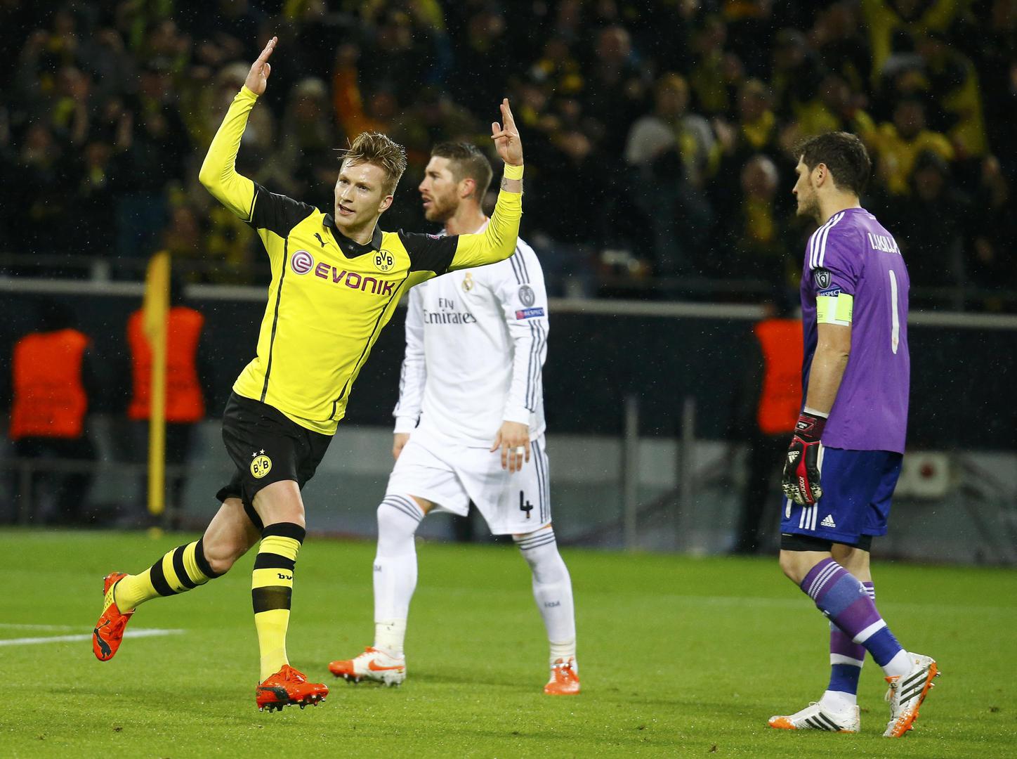 Strah se uvukao u redove Reala, a Borussija je došla u vodstvo u 24. minuti golom Marca Reusa nakon katastrofalne pogreške Pepea. Stoper Reala glavom je vraćao loptu Casillasu, ali to je napravio jako loše. Reus je došao prvi do lopte i prevario Casillasa za 1:0.