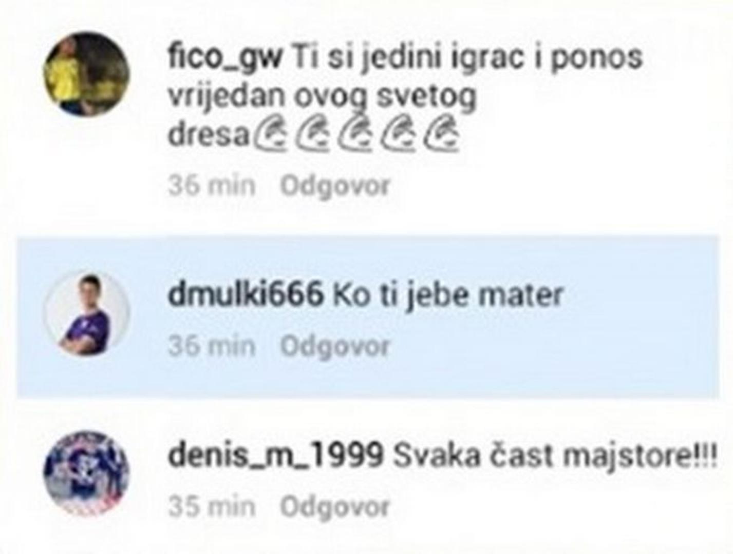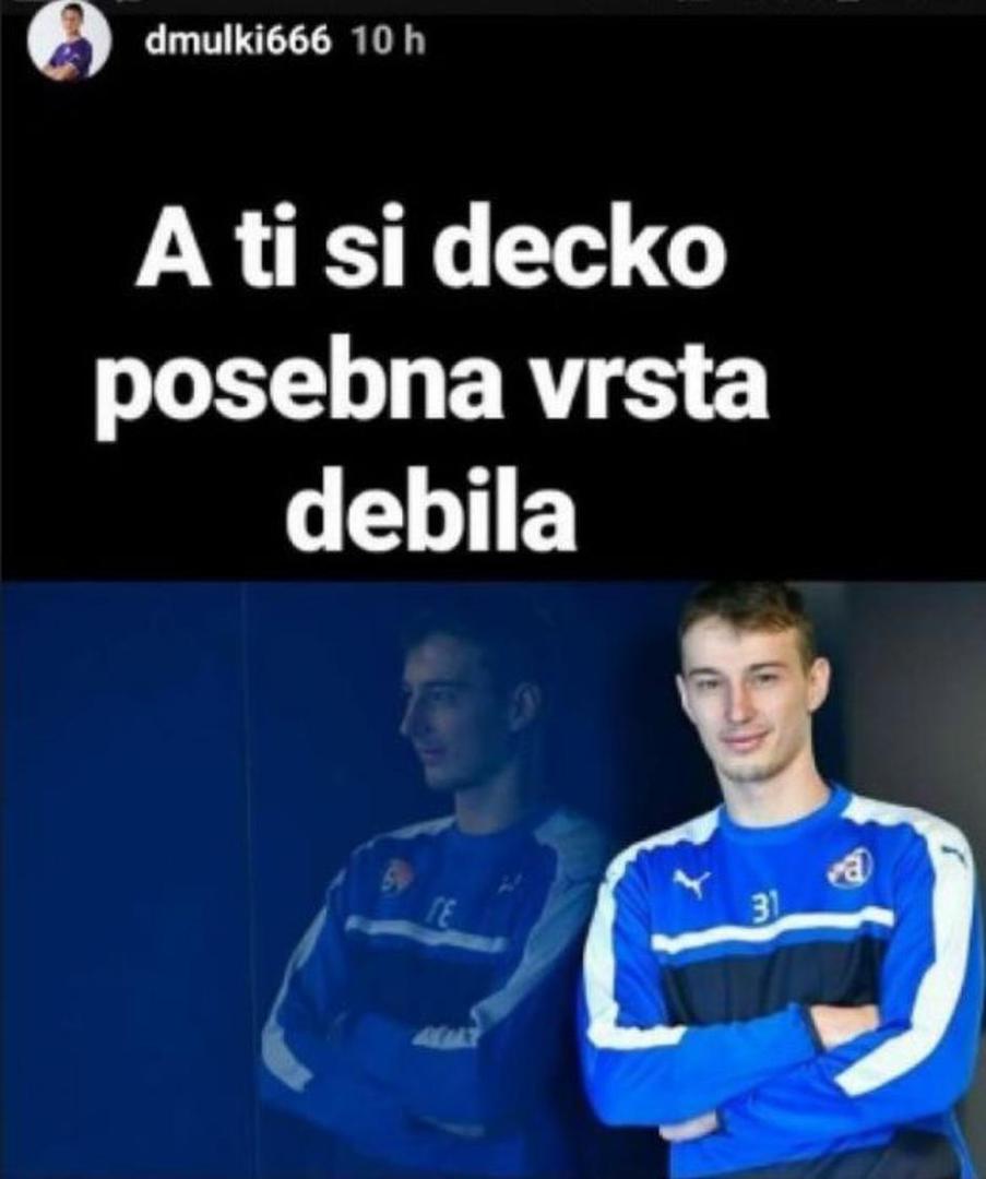Nakon što je danas Tamara Bulatović, zaručnica Rijekinog igrača Marka Vešovića, na Instagramu neprimjereno izvrijeđala Dinamovog napadača El Arbija Soudanija isto je, ako ne i gore, učinio i mladi igrač novog hrvatskog prvaka, 18-godišnji junior Dominik Mulac.