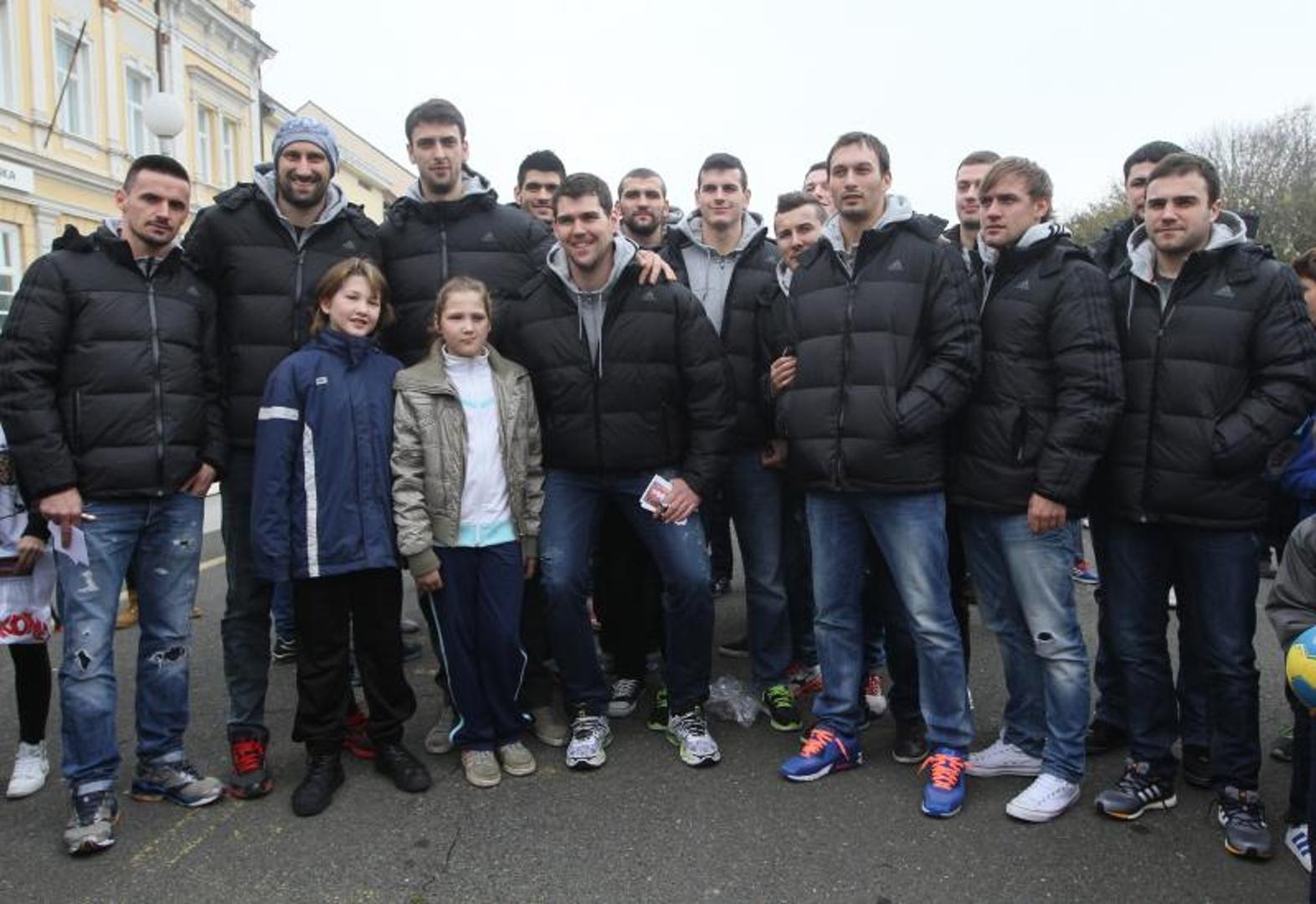 Hrvatski rukometaši danas su se na središnjem koprivničkom trgu družili sa svojim brojnim navijačima i podijelili im autograme, prigodne darove i fotografilirali se s njima. Rukometaši su se uključili i u humanitarnu akciju prikupljanja pomoći za Marijetu Bugarin, 11-godišnju djevojčicu koja jedina u Hrvatskoj boluje od Parry-Rombergova sindroma, bolesti koja izjeda jednu stranu lica. Već dva mjeseca za nju se skluplja novac za prijeko potrebnu operaciju u SAD-u.