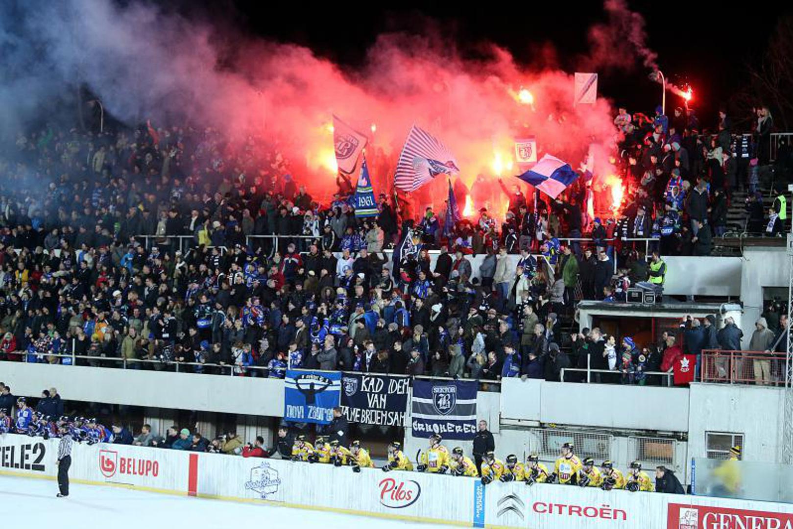 Prvi puta u pet sezona na utakmici Medveščaka vidjeli smo bakljadu (navijači upalili 30-ak baklji), a na kraju utakmice i veliki vatromet.