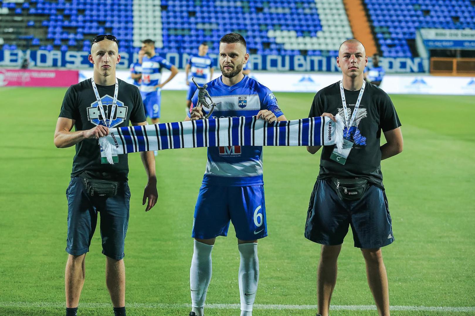 25.07.2020.., stadion Gradski vrt, Osijek - Hrvatski Telekom Prva liga, 36. kolo, NK Osijek - NK Lokomotiva. Ante Majstorovic primio je nagradu kao najbolji nogometas u izboru navijaca Kohorte. Photo: Davor Javorovic/PIXSELL