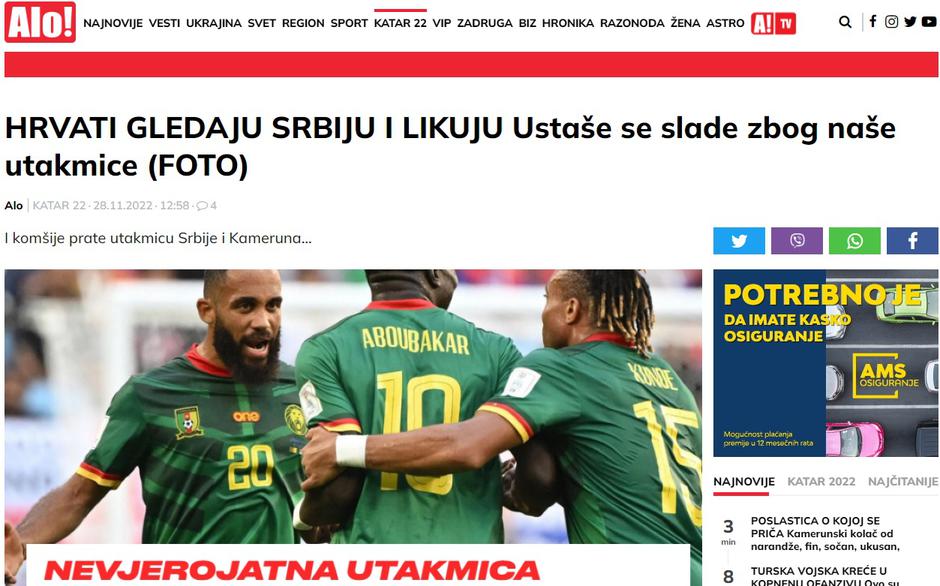 Alo tako ima članak u kojem kaže kako se: "Ustaše slade zbog utakmice Srbije".