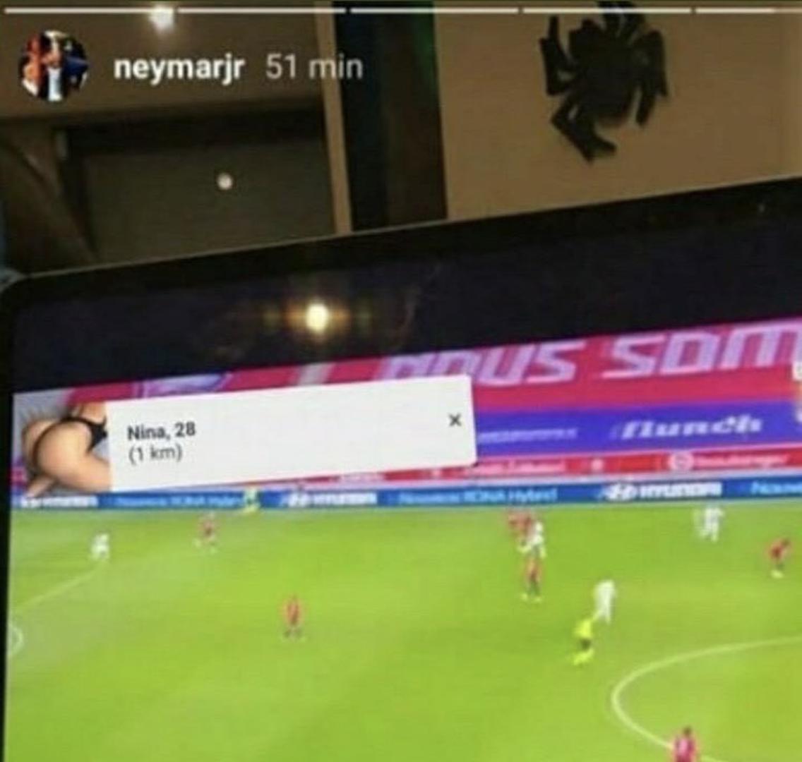 Fotografiju na kojoj se vidi da gleda utakmicu je, očito nepažnjom, objavio na Instagram profilu, upravo mu je u tom trenutku iskočila reklama za 28-godišnju Ninu koja je udaljena jedan kilometar od njega.
