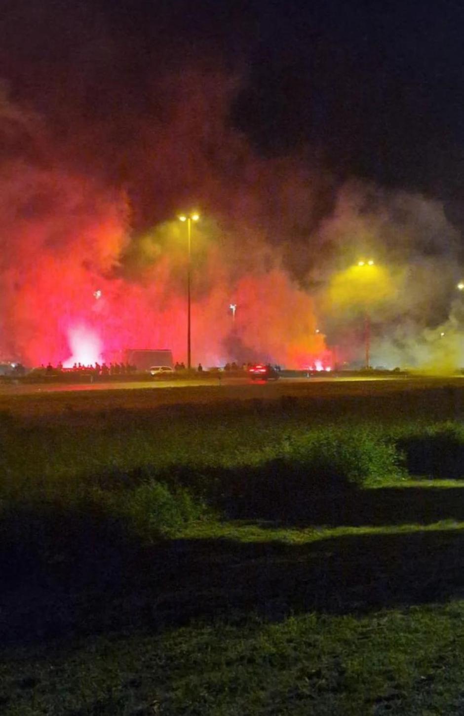 Nakon odbijanja ulaska na stadion u njihovom ritmu i po njihovim pravilima, svaki ulaz na benzinsku stanicu na autoputu je bio zapriječen od strane policije. Nitko iz policije nije smatrao potrebnim dati informaciju kada će nam dopustiti da stanemo na neku benzinsku crpku ili odmorište. Iako je cijeli dan po priznanju same policije protekao korektno i bez incidenata, umjesto razgovora s navijačima policija je izabrala zabrane, a vodu, hranu i piće za njih više od tisuću i pol predvidjela po dolasku u Split, valjda. Kao da nije dovoljno da su ih prethodno dulje od pet sati držali gladnima, žednima i bez osnovnih ljudskih i higijenskih uvjeta.