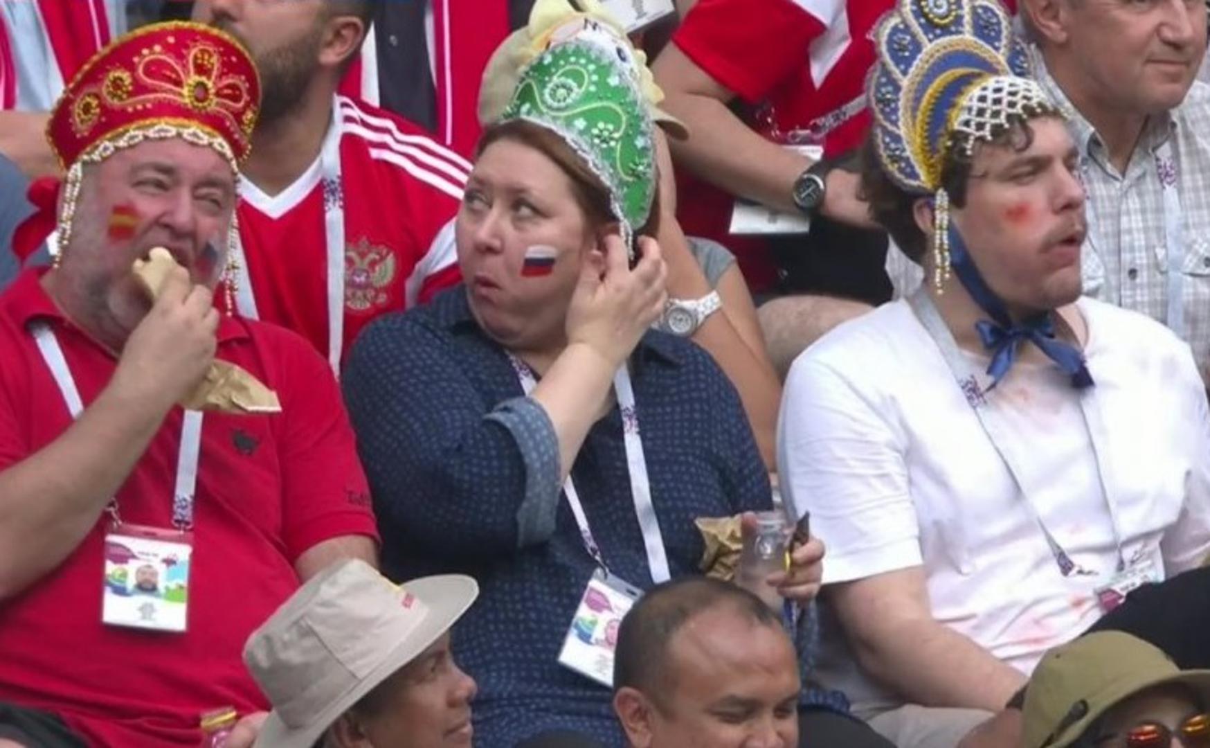 Opća popularnost zadesila je tročlanu 'obitelj s kokošnikima', ženu i dva muškarca, koje su kamere uhvatile kako s nepomućenim spokojem jedu hot-dogove, dok je većina Rusa na moskovskom stadionu Lužnjiki i pred ekranima diljem zemlje strepila za ishod utakmice osmine finala sa Španjolskom i koju su Rusi dobili na penale.
