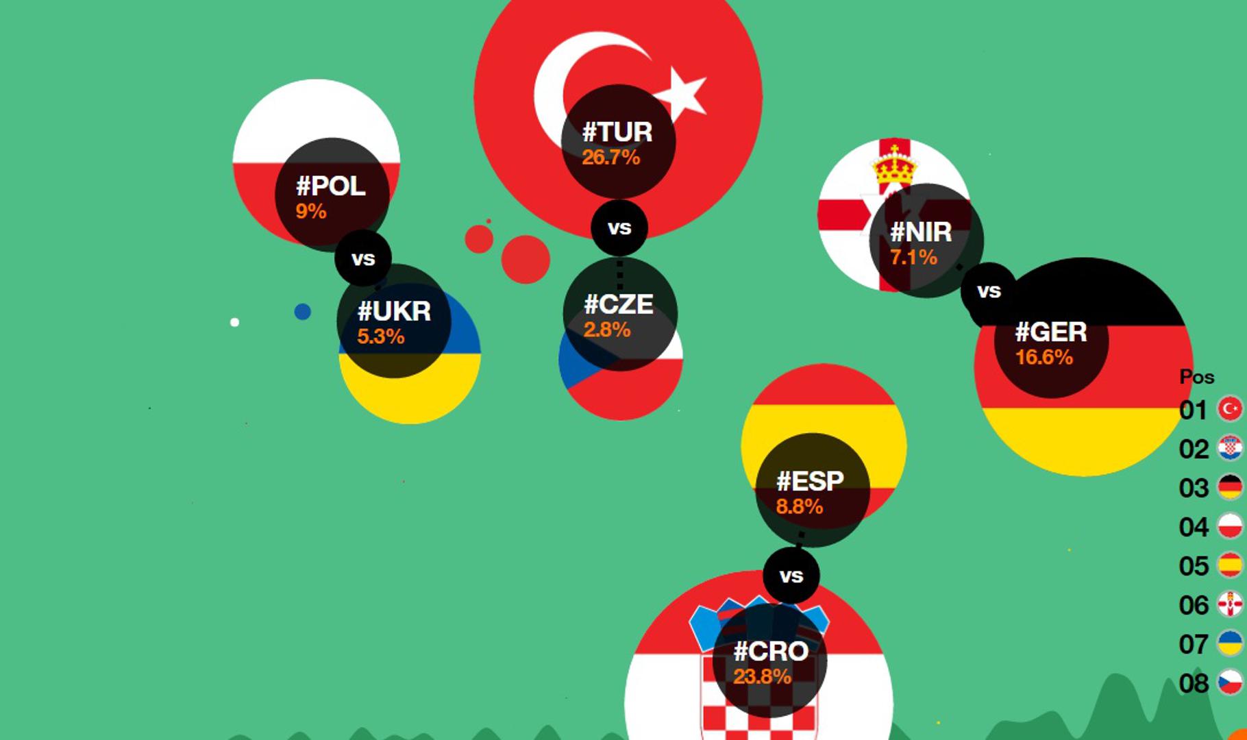 Sve što hrvatski korisnici društvenih mreža trebaju napraviti kako bi Eiffelov toranj zasvijetlio u hrvatskim bojama jest da u svoje postove stavljaju hashtag #CRO do 21.30. Osim Turske, nijedna država nije ni blizu Hrvatskoj. Rezultate uživo možete pratiti ovdje.