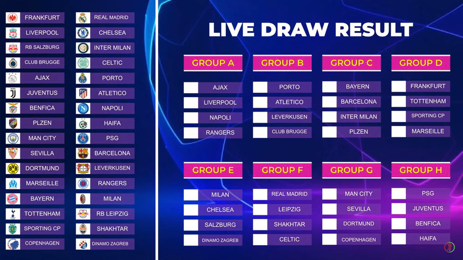 • Grupa F: Real Madrid, Leipzig, Shakhtar, Celtic