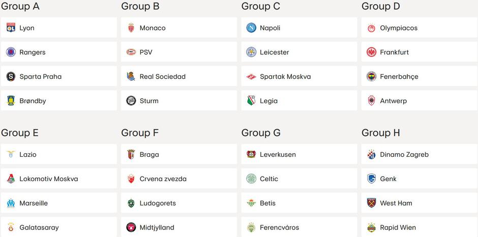 SKUPINA D: Olympiakos, Eintracht, Fenerbahče, Antwerp