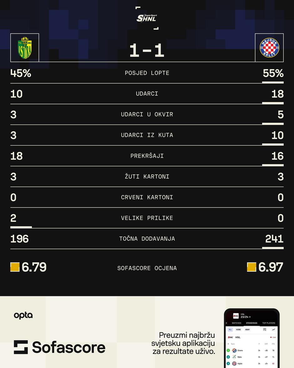 15' Konačno je Hajduk nešto napravio na današnjoj utakmici. Imali su dva kornera, a onda je Brekalov udarac iz daljine blokirala domaća obrana. Splićani pokazuju znakove života.