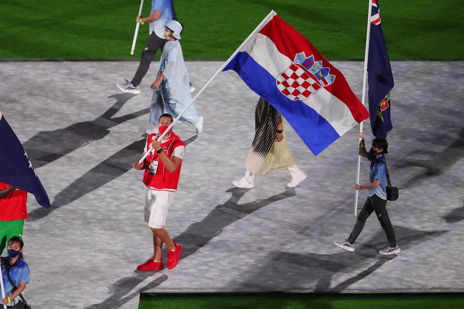 08.08.2021., Japan, Tokio - Olimpijske igre Tokio 2020. Svecana ceremonija zatvaranja Olimpijskih igara u Tokiju.Cast da nosi hrvatsku zastavu na zatvaranju pripala je vaterpolistu Andri Buslji. Photo: Igor Kralj/PIXSELL