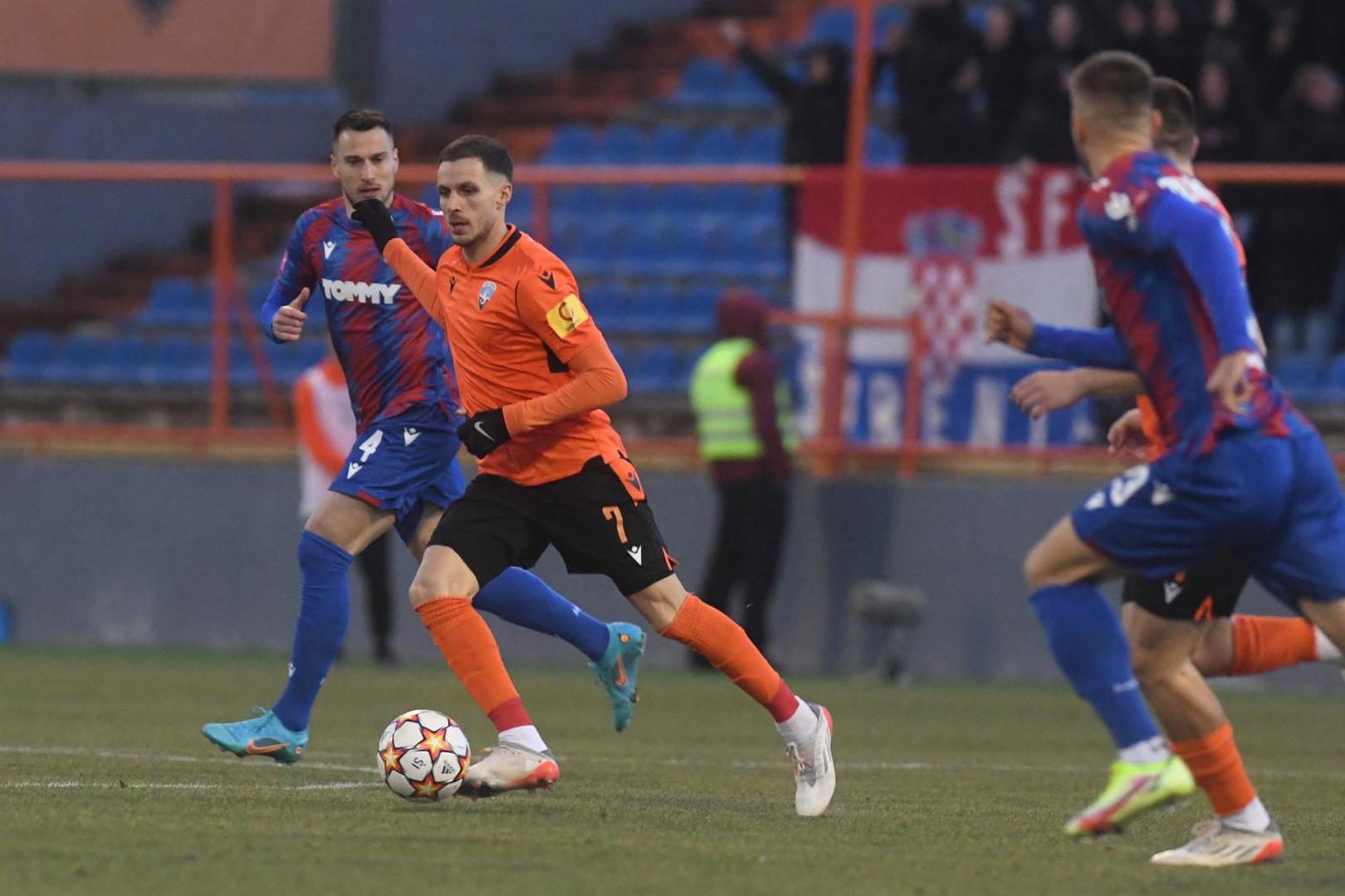 Šibenik je odigrao vrlo aktivno prvo poluvrijeme te je uspio i izjednačiti nakon lijepe akcije u 25. minuti. Kvesić je prošao po lijevom boku, dodao Sahitiju na rub kaznenog prostora, a ovaj je petom ostavio loptu na udarac Ćuriću koji je sa 20-ak metara pogodio donji lijevi kut.