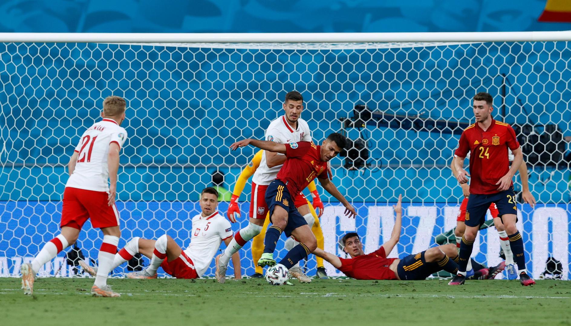 Poljaci su protiv Španjolaca odigrali prvo poluvrijeme puno hrabrije negoli Šveđani, ali im je to ipak donijelo samo zaostatak. U 25. minuti filigranska akcija Španjolaca, Morata se ubacio ispred poljskog braniča i zabio, a gol je priznat tek nakon intervencije VAR-a.