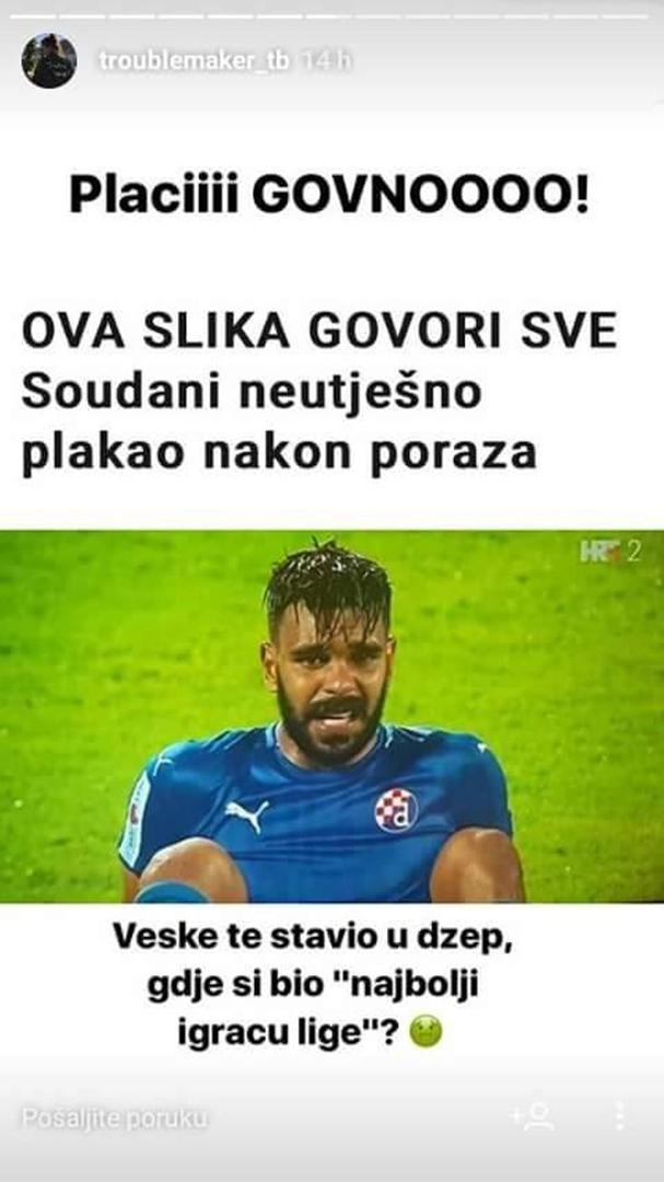 Lijepa Crnogorka na Instagramu je objavila poruku upućenu Dinamovu napadaču El Arbiju Soudaniju, a njezin sadržaj bio je potpuno neprimjeren. Kad je shvatila što je učinila izbrisala je objavu, pišu 24sata.