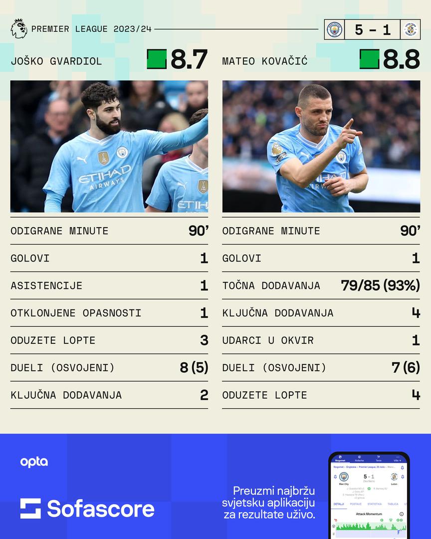 Gvardiolu je, kao i Kovačiću, to bio prvi prvenstveni pogodak za Manchester City te drugi ukupno. Premijerni je zabio tijekom ovog tjedna, protiv Reala u Ligi prvaka. Cijelu utakmicu za aktualnog engleskog prvaka su odigrali hrvatski reprezentativci Kovačić i Gvardiol.