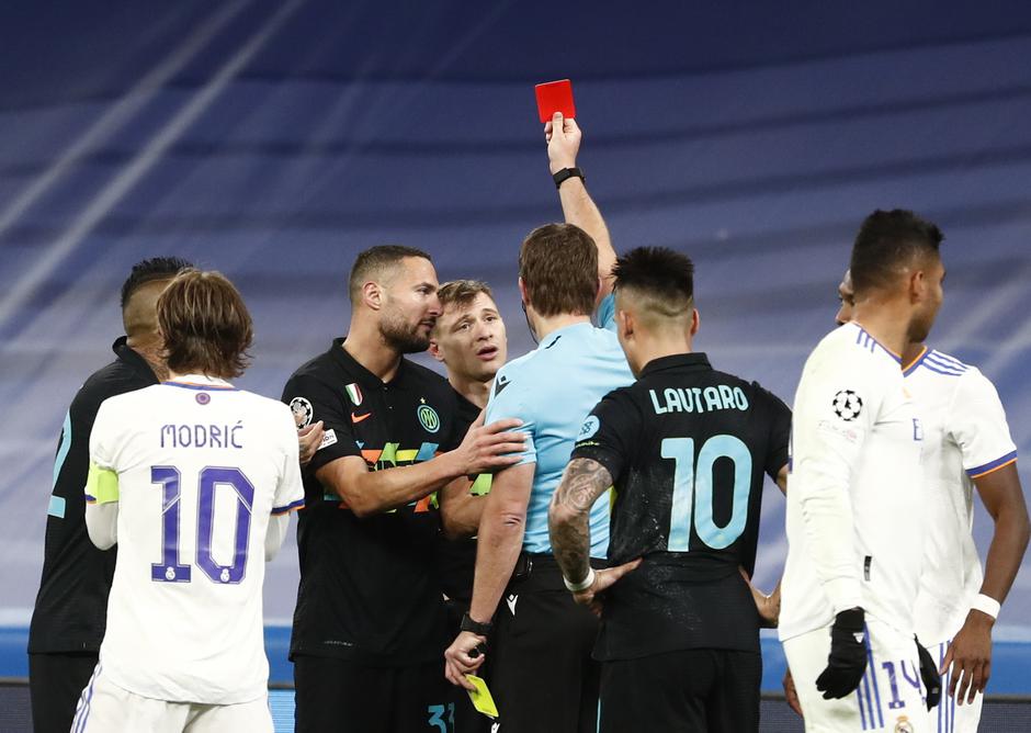 Naime, nervozni su gosti kod 0:1 izgubili živce, u prvom redu Barella, koji je u 64. minuti pokušao s tla udariti Militaa nakon jednog prekršaja kod aut-linije, ali promašio je. Zaiskrilo se, dotrčali su i ostali igrači, a u tom su se kaosu sukobili Modrić i Vidal.