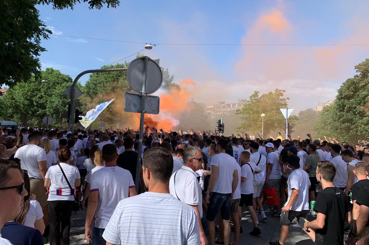 Kroz cijeli dan su Torcida i Armada imali performanse, gosti dolaskom brodom i šetnjom prema Poljudu, a domaći pjesmom i navijanjem po ulicama, a zatim skupno odlaskom prema Poljudu. Pritom su scene uistinu ostavljale bez daha.