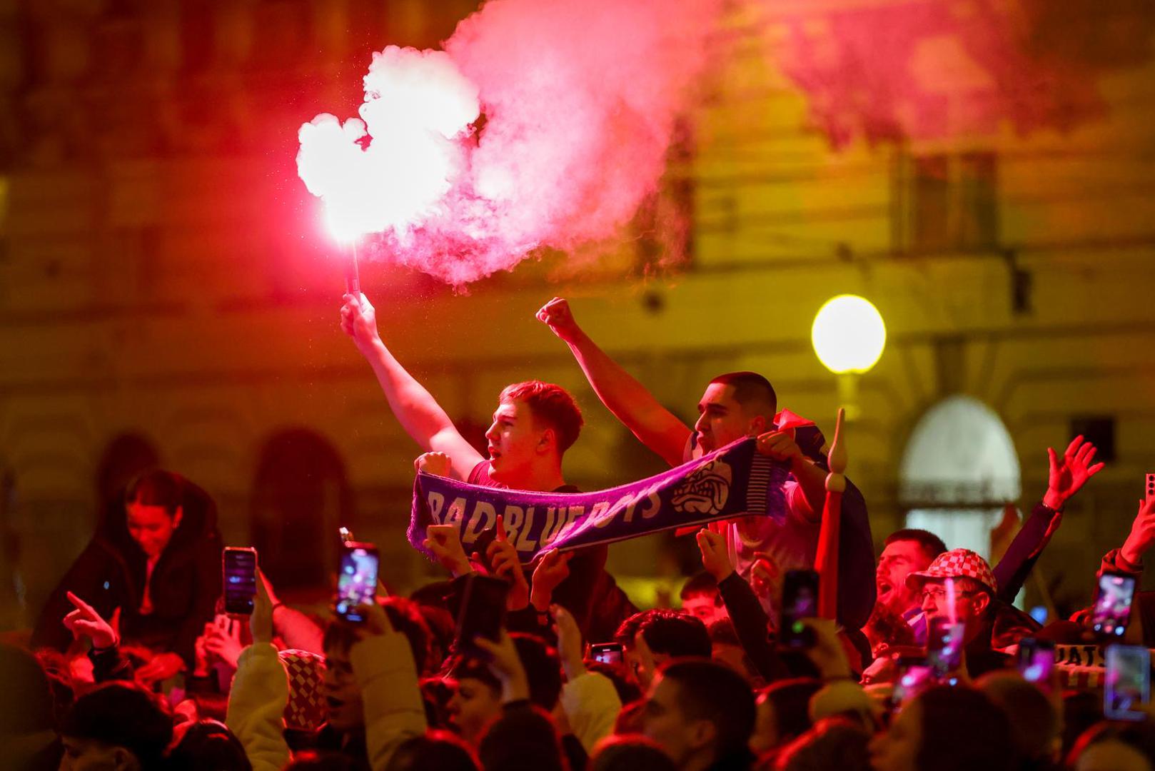 Središnji zagrebački trg punio se navijačima još u ranim popodnevnim satima, uz mnoštvo hrvatskih zastava, a ozračje na trgu zagrijavali su Zaprešić Boysi, Hrvatske ruže i Marko Perković Thompson.