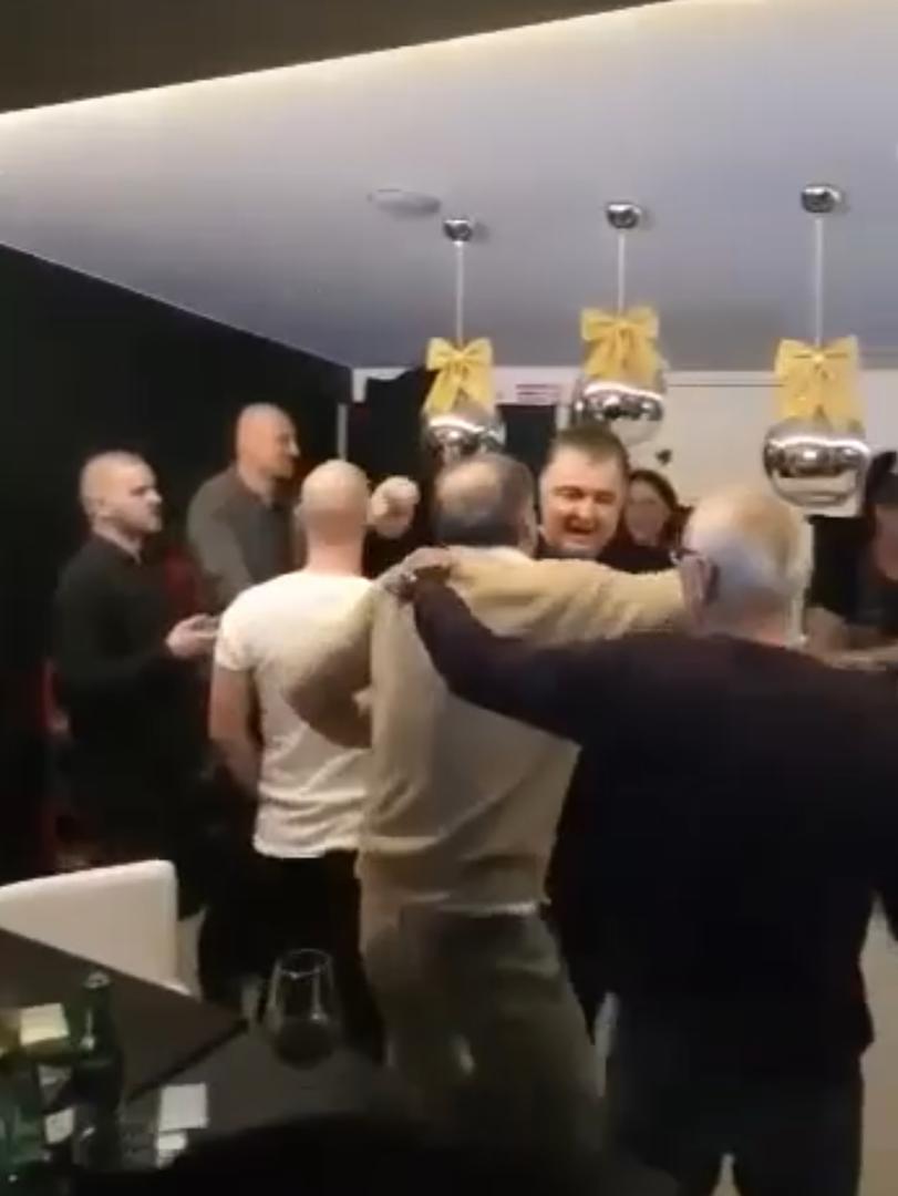 Okupljeni su mu zapljeskali i grlili ga, a Mamić se smijao i uživao u zabavi.