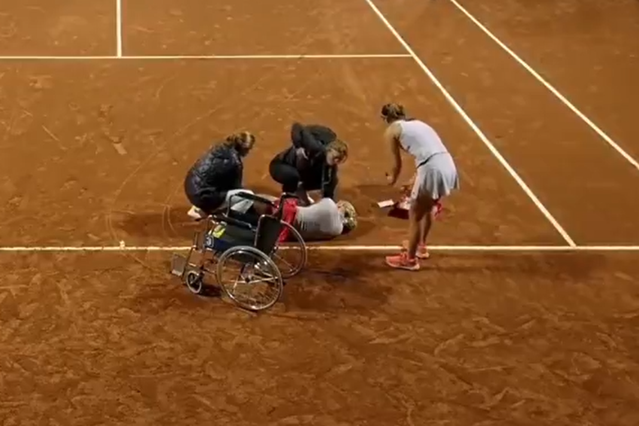Francesca Jones atravesó una horrible situación en Bogotá: se desvaneció y debió retirarse de la cancha en silla de ruedas.@juliriera02, su rival, actuó en el momento y ayudó a los médicos.pic.twitter.com/TG1PG6TVY0