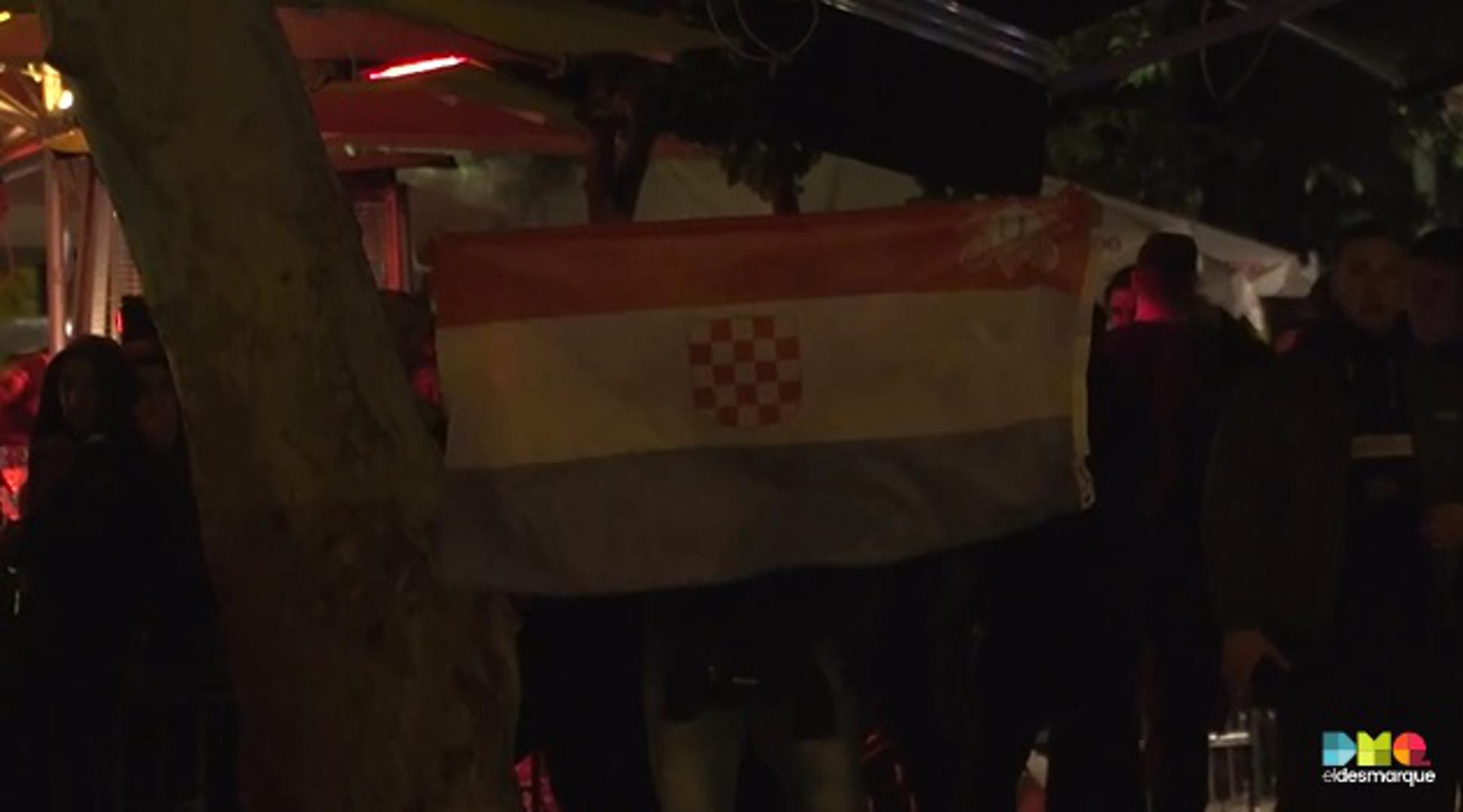 Zatim je jedan navijač pokazao zastavu NHD s prvim bijelim poljem i ustaškim "U" u gornjem desnom kutu. Nakon toga je drugi navijač pokazao golu stražnjicu.