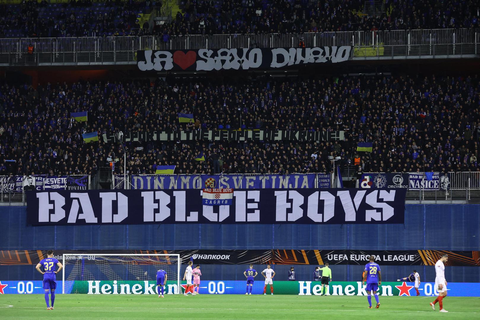 Soccer Football - Europa League - Play Off Second Leg - Dinamo Zagreb v Sevilla - Stadion Maksimir, Zagreb, Croatia - February 24, 2022 General view of Dinamo Zagreb fans during the match REUTERS/Borut Zivulovic Photo: BORUT ZIVULOVIC/REUTERS