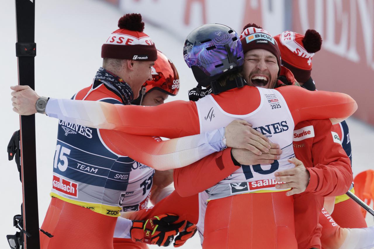 Gotovo je nemoguće i ono što su izveli Švicarci koji su u muškoj timskoj kombinaciji nastupili s četiri tandema. A oni su ostvarili trostruku pobjedu u kojoj se vozi spust i slalom. Pobijedili su Franjo Von Allmen i Loic Meillard a na postolje su se uspeli i njihovi sunarodnjaci Monney i Nef odnosno Rogentin i Rochat. Četvrto mjesto osvojila je prva američka posada a peta drugi austrijski dvojac.
