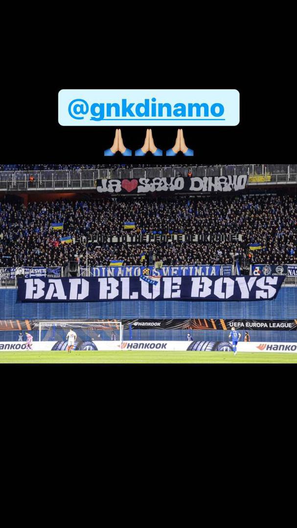 Objava je nakon toga izbrisana, a Ukrajinac uvjerava da je to napravio Instagram. Nakon toga je nastavio dijeliti poruke podrške svojoj zemlji, a zahvalio je i Bad Blue Boysima.